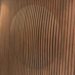 This wooden slat cladding system is designed to transform walls into a refined architectural statement. The vertical slats create a clean, contemporary rhythm, while the curved 3D pattern introduces a sculptural element that elevates the space.